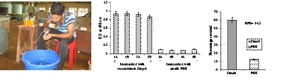 Edwardsiella tarda is responsible for ‘Edwardsiellosis’, a disease characterized by septicemia with extensive skin lesions and swelling in fish. We have developed a recombinant vaccine with high protection (RPS ~70%) when challenged with E.tarda.