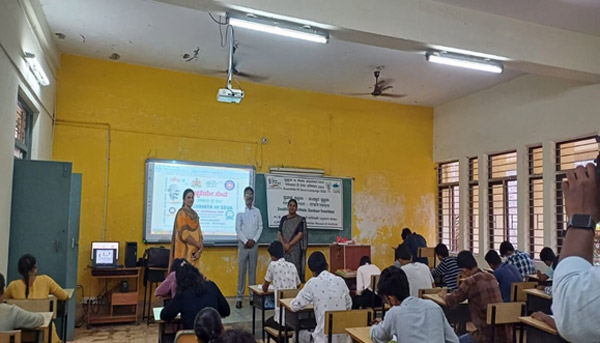 In the afternoon, the premises of the girls' hostel were cleaned, and Van Mahotsava was celebrated. Saplings were planted in the presence of officials from the Department of Forests. This initiative aimed to enhance green cover and promote environmental conservation within the college campus.