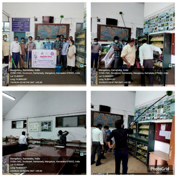 The NSS unit of the college collaborated with MPEDA Regional Division, Mangalore to organize the “Swachhata Hi Seva” on 1st October, 2024. All the participants were provided with T-shirts and caps. A total of 60 students along with faculties and staff of the college, officials of MPEDA along with NETFISH actively participated in cleaning the different area of the campus.