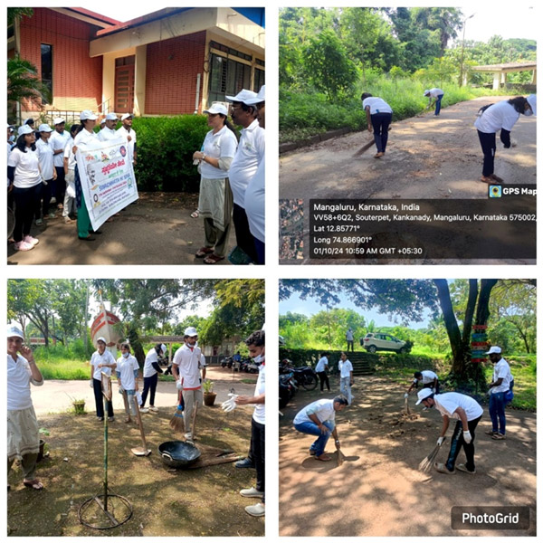 To ensure an efficient and organized cleaning process, different teams were formed, with teachers assigned as coordinators and a student representative in each team. The following teams were assigned specific areas for cleaning namely College entrance, Mangala Guest house, Amphi theatre, Opposite to the Library, Roads, Behind Library Building, Various Departments, COFAA Guest House, Physical Education Department, on the way to Boy’s Hostel, Girls and Boys Hostel. Each team diligently worked to remove unwanted plants and trash, particularly plastics, from the designated area. The plastic waste collected was handed over to the Mangaluru Municipal Corporation for proper disposal, while biodegradable waste was sent to the landfill, ensuring that the cleaning efforts were both effective and environmentally conscious.