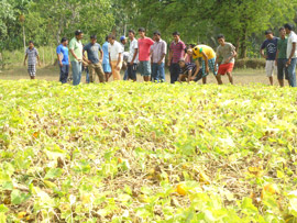 Demonstration of Boardo mixture to the farmers at farm site during the camp |