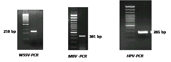 PCR kit for detection of white spot syndrome virus, Monodon baculo viruses, Hepatopancreatic parvovirus, infections hypodermal, hematopoietic necrosis virus and laem singh virus have been developed.