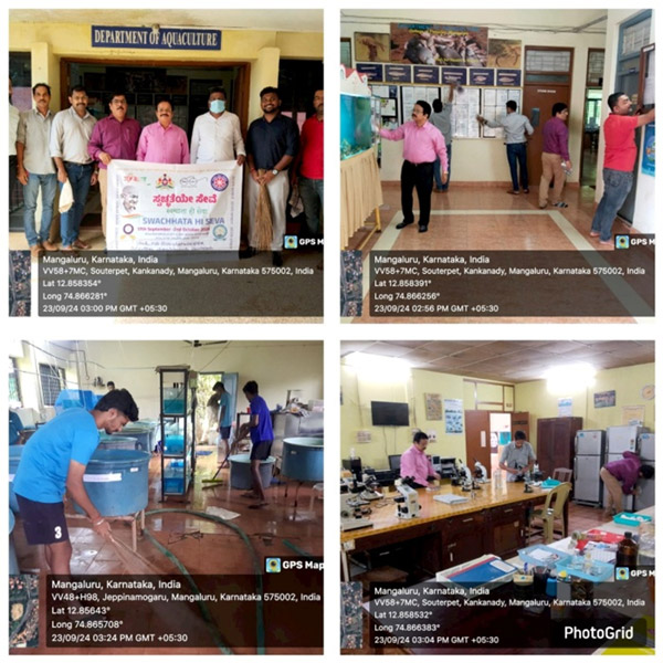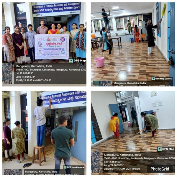 The NSS unit of the college collaborated with MPEDA Regional Division, Mangalore to organize the “Swachhata Hi Seva” on 1st October, 2024. All the participants were provided with T-shirts and caps. A total of 60 students along with faculties and staff of the college, officials of MPEDA along with NETFISH actively participated in cleaning the different area of the campus.