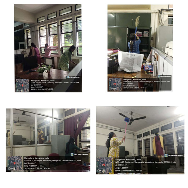 To ensure an efficient and organized cleaning process, different teams were formed, with teachers assigned as coordinators and a student representative in each team. The following teams were assigned specific areas for cleaning namely College entrance, Mangala Guest house, Amphi theatre, Opposite to the Library, Roads, Behind Library Building, Various Departments, COFAA Guest House, Physical Education Department, on the way to Boy’s Hostel, Girls and Boys Hostel. Each team diligently worked to remove unwanted plants and trash, particularly plastics, from the designated area. The plastic waste collected was handed over to the Mangaluru Municipal Corporation for proper disposal, while biodegradable waste was sent to the landfill, ensuring that the cleaning efforts were both effective and environmentally conscious.