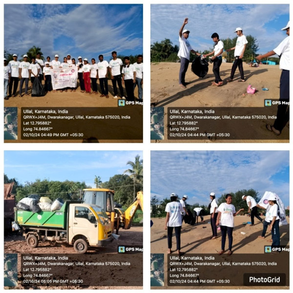 The College of Fisheries, Mangalore, in collaboration with NSS unit, organized a campaign at Ullal Beach. Around 100 students and faculty members gathered at 4:30 PM to clean the beach. The faculty members of the college, and the local people joined the team during campaign. The team collected discarded items left by tourists and visitors, such as plastic straws, spoons, food wrappers, cups, bottles, and toys. These materials were sorted into degradable and non-degradable waste, then placed into gunny bags and garbage bags for disposal by the Town Municipal Council.