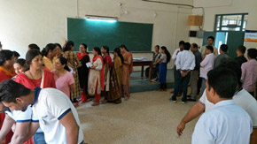 In the afternoon, the premises of the girls' hostel were cleaned, and Van Mahotsava was celebrated. Saplings were planted in the presence of officials from the Department of Forests. This initiative aimed to enhance green cover and promote environmental conservation within the college campus.