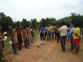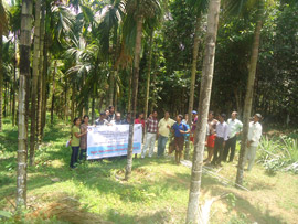 IV B.F.Sc. students interacting with a progressive farmer in his farm during their field visit to Chelur as a part of their camp |