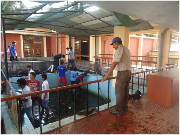 Special cleanliness drive was undertaken by the College of Fisheries, Mangalore to organise 'SWACHH BHARATH' campaign to spread message among the masses in the colleges/ schools/ campuses/ village/ slums/ hospitals/ historical monuments and other public places. In this connection, the National Service Scheme of the College has organized 'Global Hand washing Day' on 15th October, 2014.