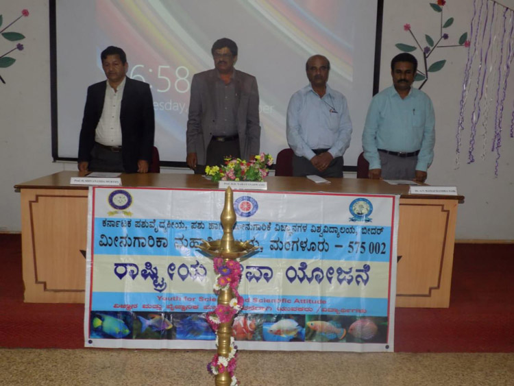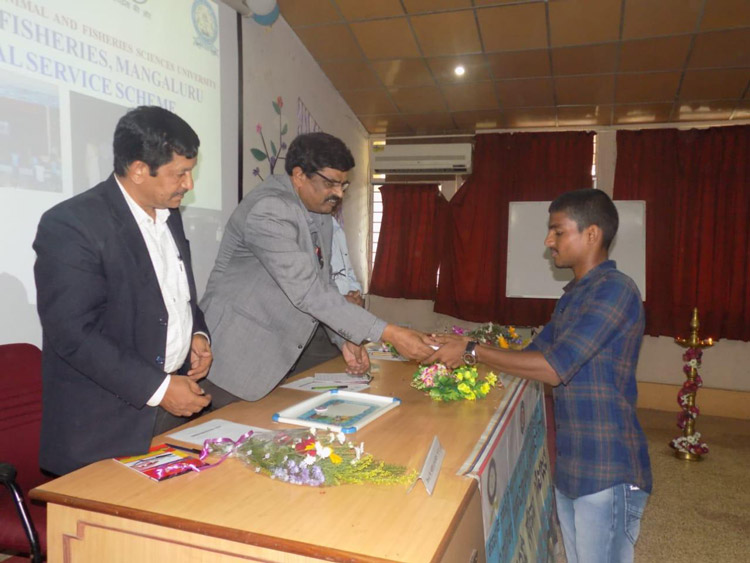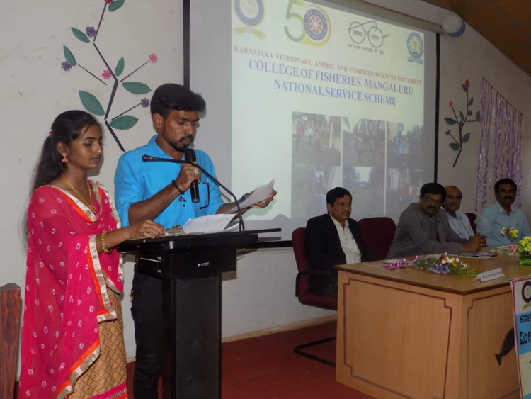 Dr. H.D. Narayanaswamy, Hon'ble Vice Chancellor, KVAFSU, Bidar was the Chief Guest for the programme. Professor. H. Shivananda Murthy, Dean (Fisheries) presided over the function; NSS co-ordinator Dr. Ramachandra Naik, Registrar inchrage KVAFSU, Bidar Professor. H.R.V. Reddy was also present for the programme.
