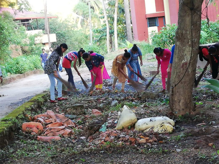 Girls hostel premises cleaning program organized by the NSS Wing of CoF, M'luru on 28th September, 2018
