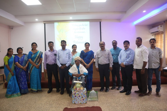 Felicitation of Sri Rajendra, Senior Janitor (Gr.1) on Jan 31, 2020.