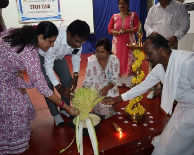 Smt. U. Geetha joined the college as Senior Gardner on 11.10.2002 and rendered her service in the Department of Fisheries Resources Management of the college. She served for 20 years and retired on Dec 31, 2022. To honour her service a small retirement party was organized by the staff club of the college. She was honored and felicitated by the Dean and President staff club, Dr. Shivakumar M. All the staff club members were present and wished her good health and happiness in the life ahead.