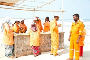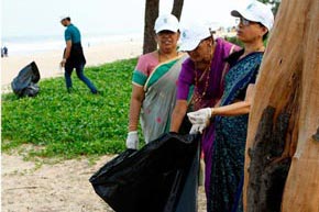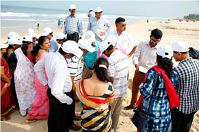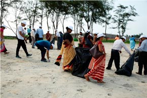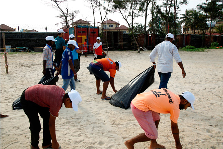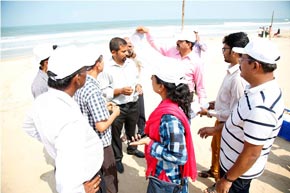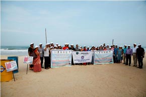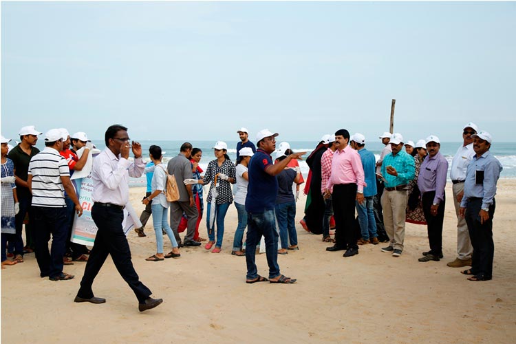 The week-long Beach cleaning programme was launched on 1.6.2018, at Panambur beach. Different line departments of Environment and Ecology, Department of Fisheries and students of College of Fisheries, Sahyadri Engineering college, NGOs and the general public actively participated in the beach cleaning programme, a stretch of 3.0 km of the beach was cleaned.