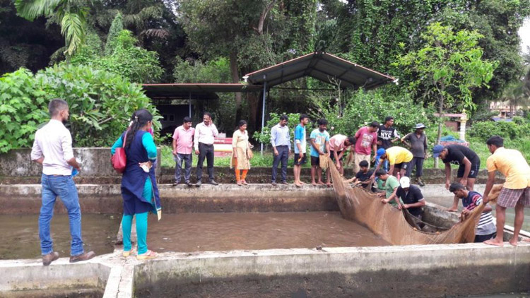 A skill development program on Aquaculture Technician Training was organized by the Department of Aquaculture, College of Fisheries, Mangaluru with funding support from National Fisheries Development Board, Hyderabad for 25 participants of Dakshina Kannada for a period of 25 days from 12.06.2018 to 07.07.2018. The training covered various aspects of fish farming like pond reparation to grow-out of table fish. The training constituted 70 hours of theory and 130 hours of practical as envisaged by Agricultural Skill Council of India (ASCI).