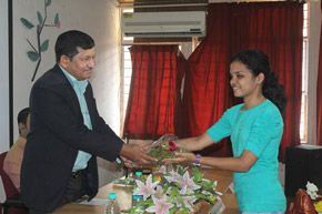 Dr. H Shivanada Murthy, Dean, College of Fisheries, Mangalore to handed over a memento to Sri T Rajaram Rao ,The Principal,Vikas College as a token of gratitude for accepting the request and making his availability for the programme. The programmed was the followed by presidential remarks by Dr. H. Shivananda Murthy, Dean (Fisheries).