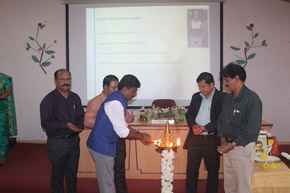 The event began with the invocation followed by the welcome speech of Dr. Somashekar, Prof and Head, Dept. of FESE. Chief guest Sri T Rajaram Rao ,The Principal, Vikas College, Mangalore inaugurated the programme by lighting the lamp and also offered floral tributes to the great mathematician- Sri Srinivasa Ramanujan.
