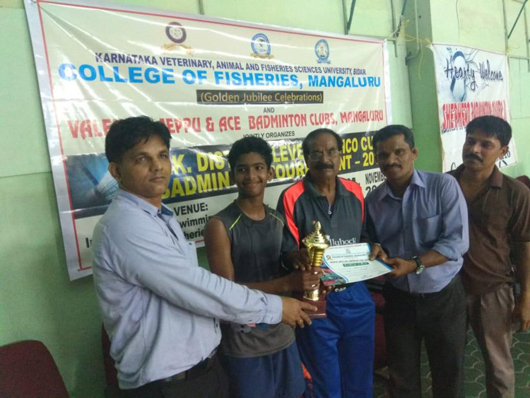 Sri A Sadananda Shetty, Chairman, Sri Devi Education Trust (R), President, D.K. District Badminton Association inaugurated the competition. Sri Praveen Bangera (Seaways Shipping & Logistics Ltd, Mangaluru). Sri C.E. Shephered (President, Shephered badminton Club, Thokottu, Mangaluru). Sri Pradeep D’souza (Deputy Director, Youth Empowerment and Sports, D.K. Mangaluru). Sri Ivan Patrao (General Secretary, D.K. District Badminton Association) were the chief guests. Dr. Shivananda Murthy, Dean (Fisheries) presided over the function. Sri Manoj Kumar, Head, Dept. of Physical Education was also present.